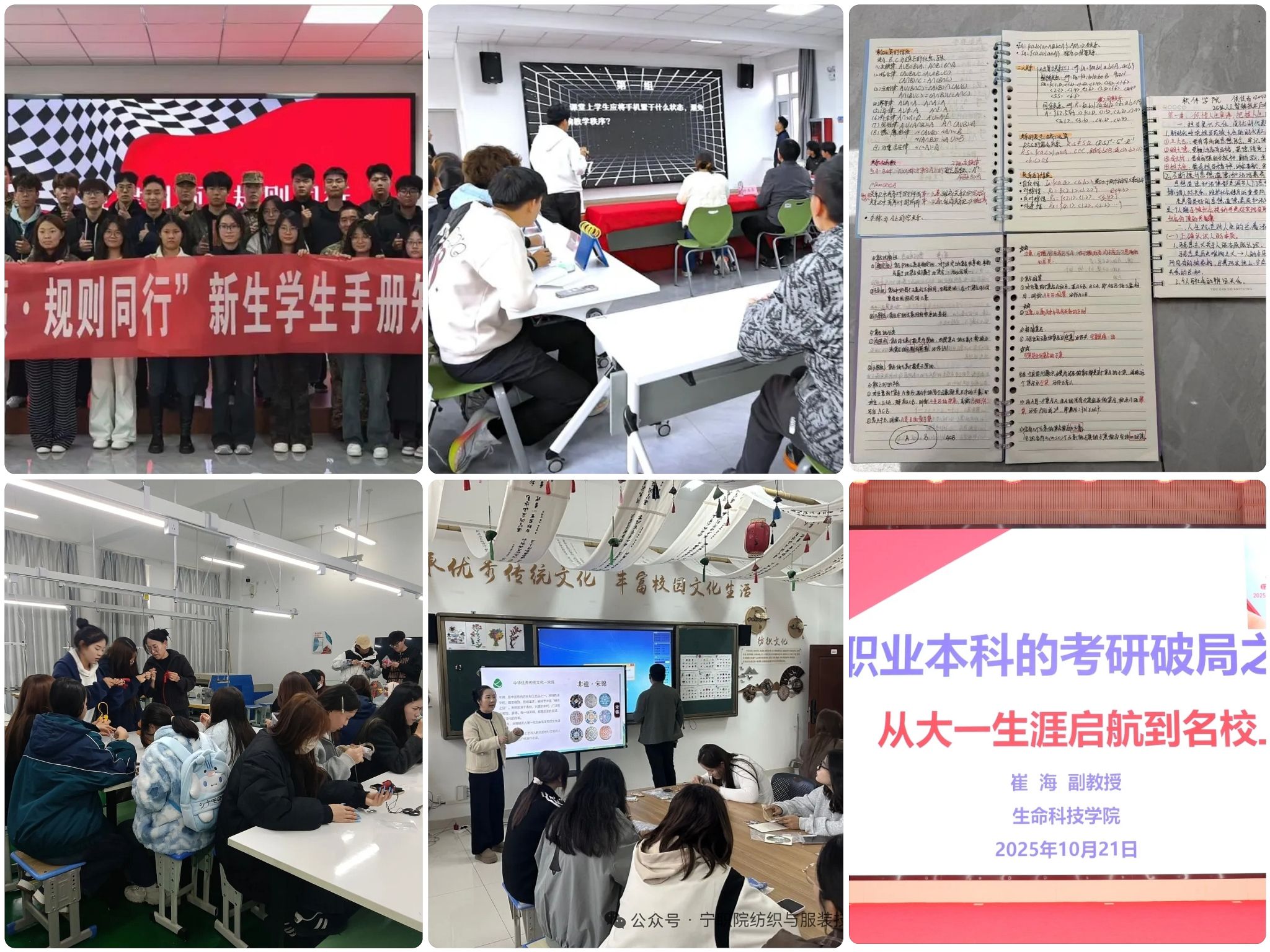 知识的生命力,在于扎根实践的土壤。我们鼓励同学们走出课堂,在车间、在赛场、在真实的工作场景中,亲手触碰知识的脉络。工业工程学院的“学生手册知识竞赛”,让规则内化于心;软件学院的“最美笔记”评选,让习惯成自然;生命科技学院的“考研启蒙指南”,为梦想铺路;纺织与服装技术系的“非遗进课堂”,让传统在指尖焕新生。在这里,学习是生动的探索,成长是实践的果实。